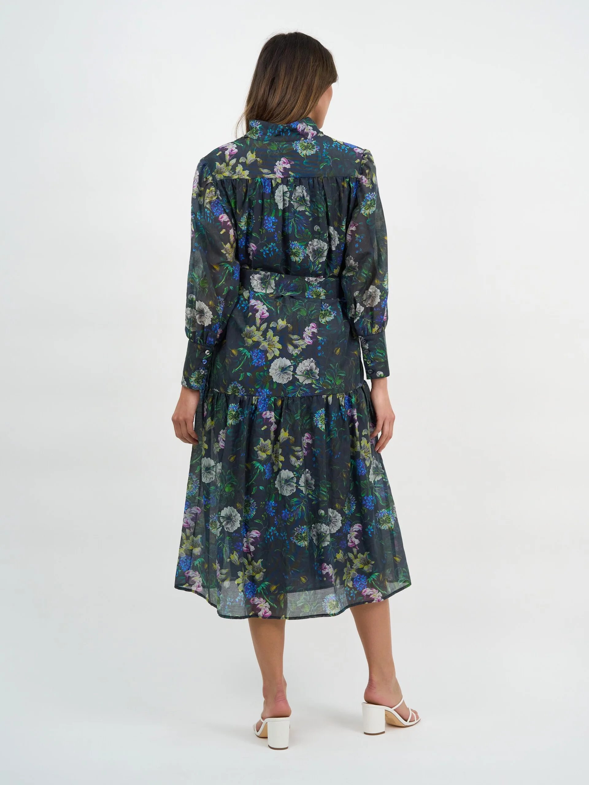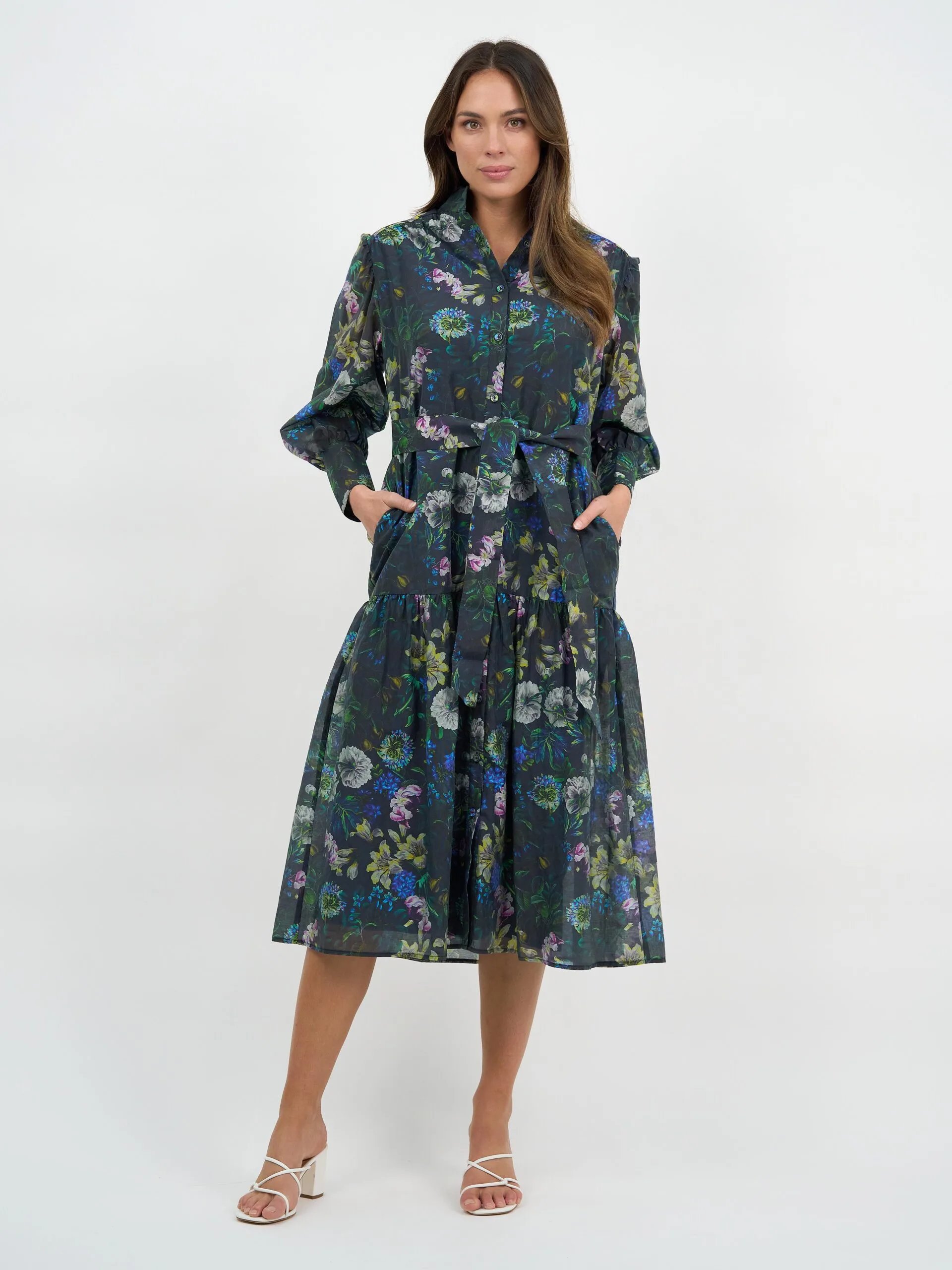 Elevate your ensemble with our Button Through Shirt Dress, featuring a sophisticated high neck collar, self-covered buttons, and a charming exclusive Liberty Rose Print. Complete with a removable belt, long sleeves with button cuffs, and delightful gathered tiers, this dress exudes timeless elegance with modern flair.