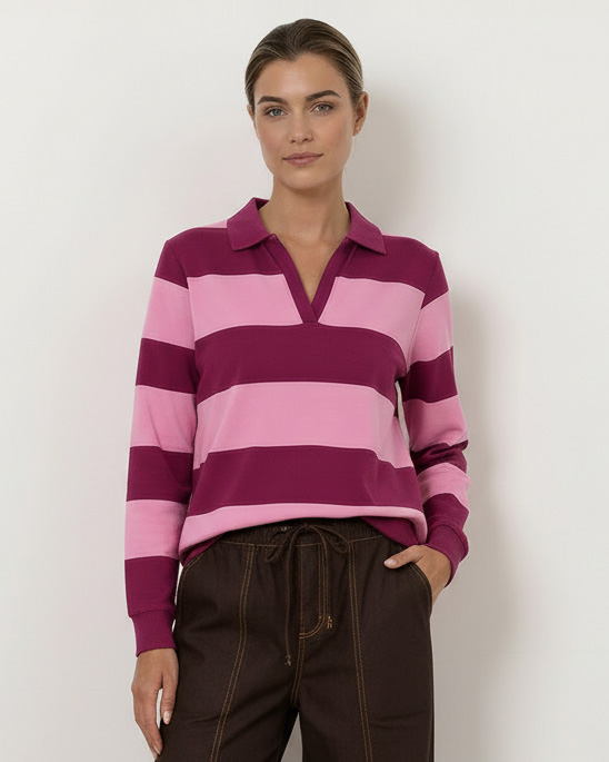 Cotton Jersey Long Sleeve Polo Top