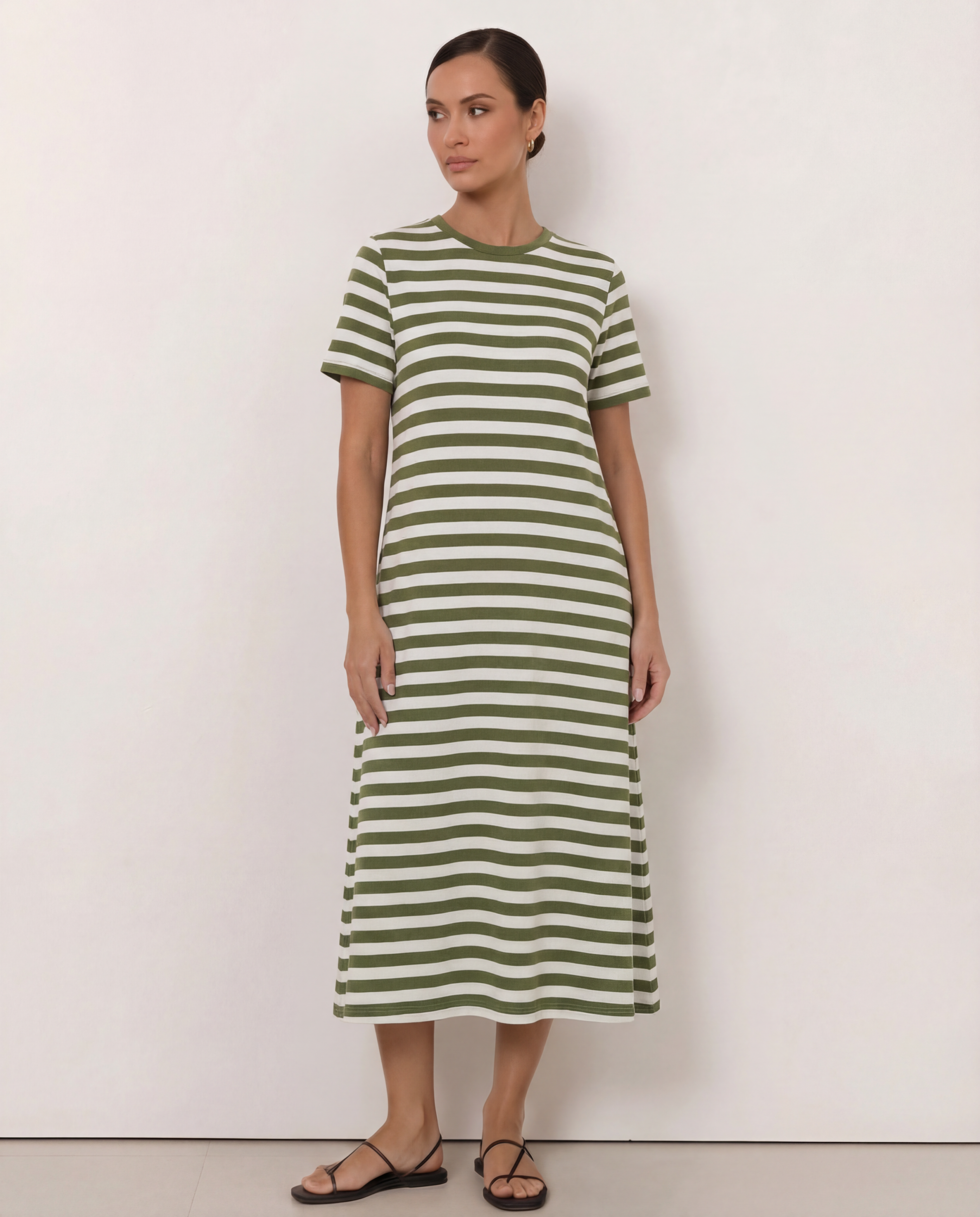 The Cotton Jersey Dress offers effortless style with its relaxed A-line silhouette. Designed for comfort and ease, this dress features a curved neckline, short sleeves, and practical side pockets—all crafted in soft, stretch cotton jersey.