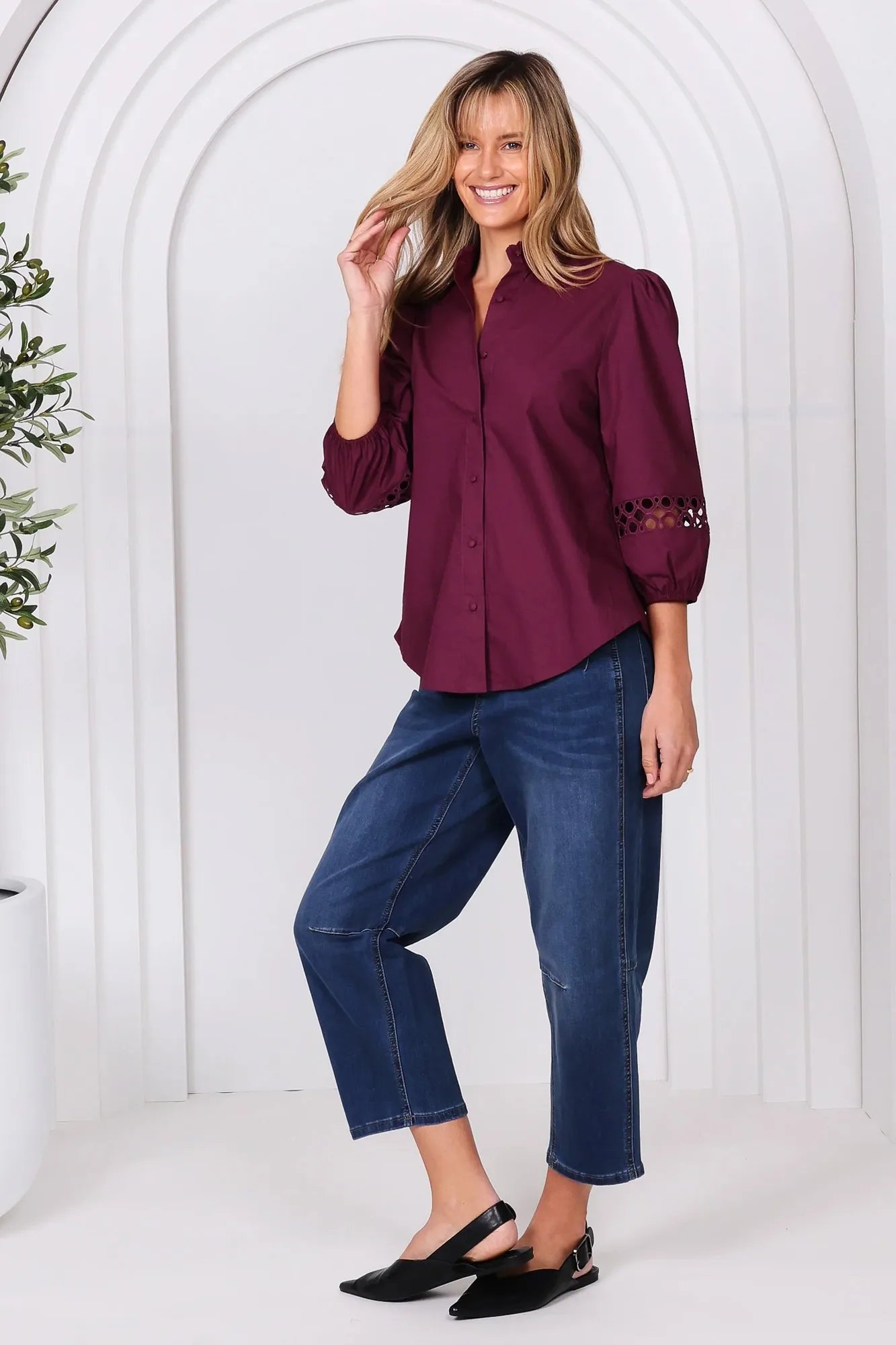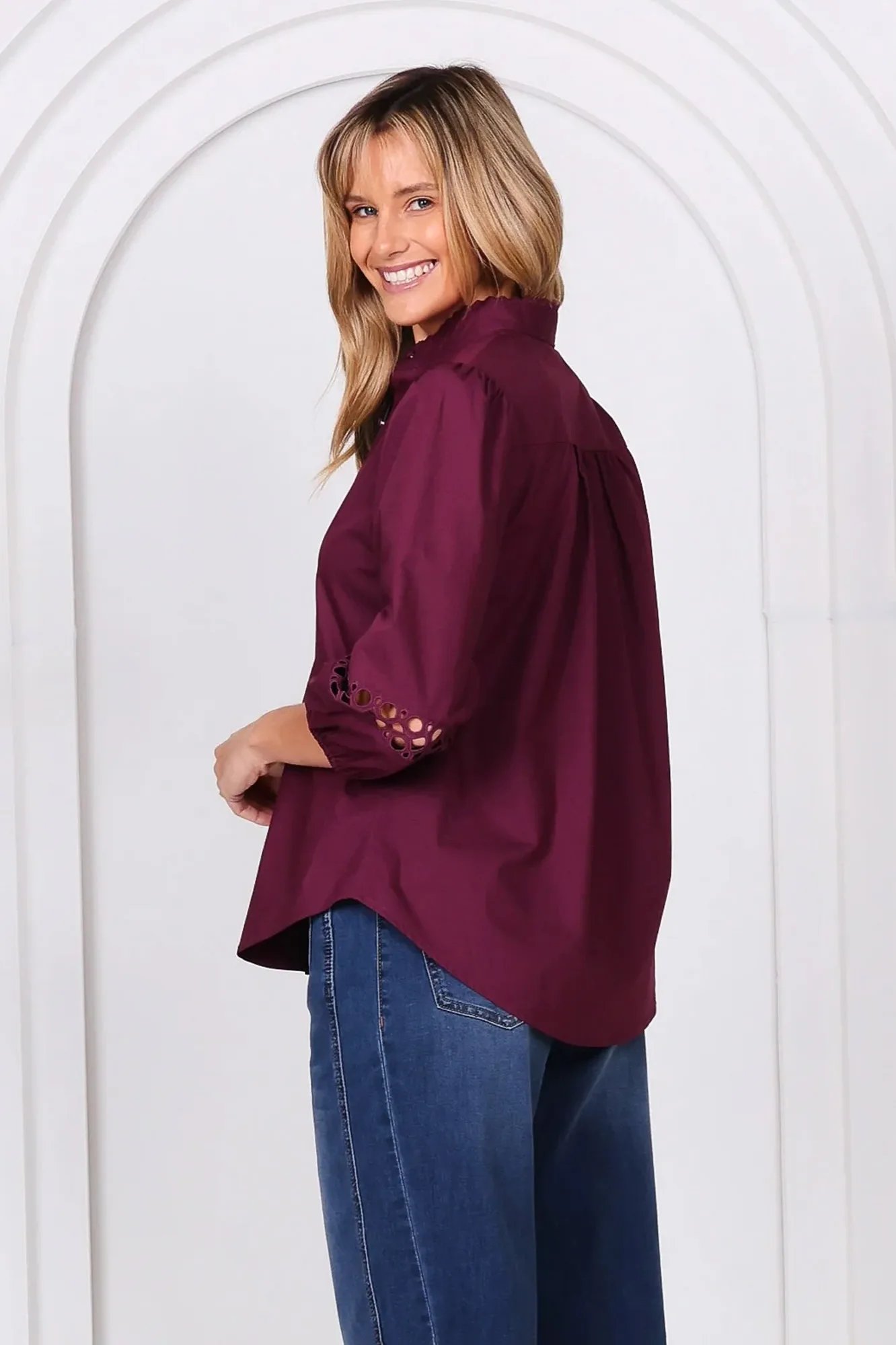 - 3/4 sleeve with cotton broidery
