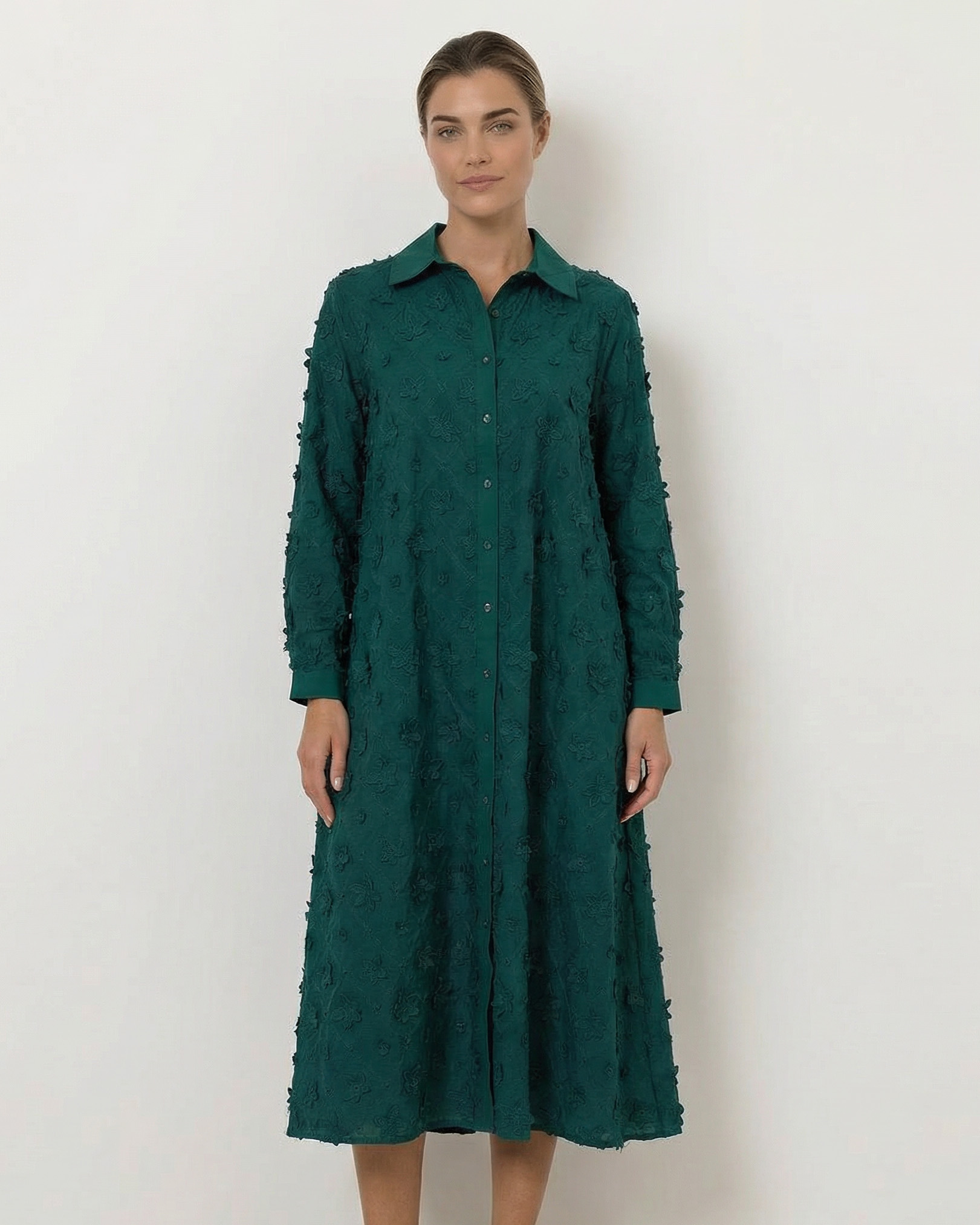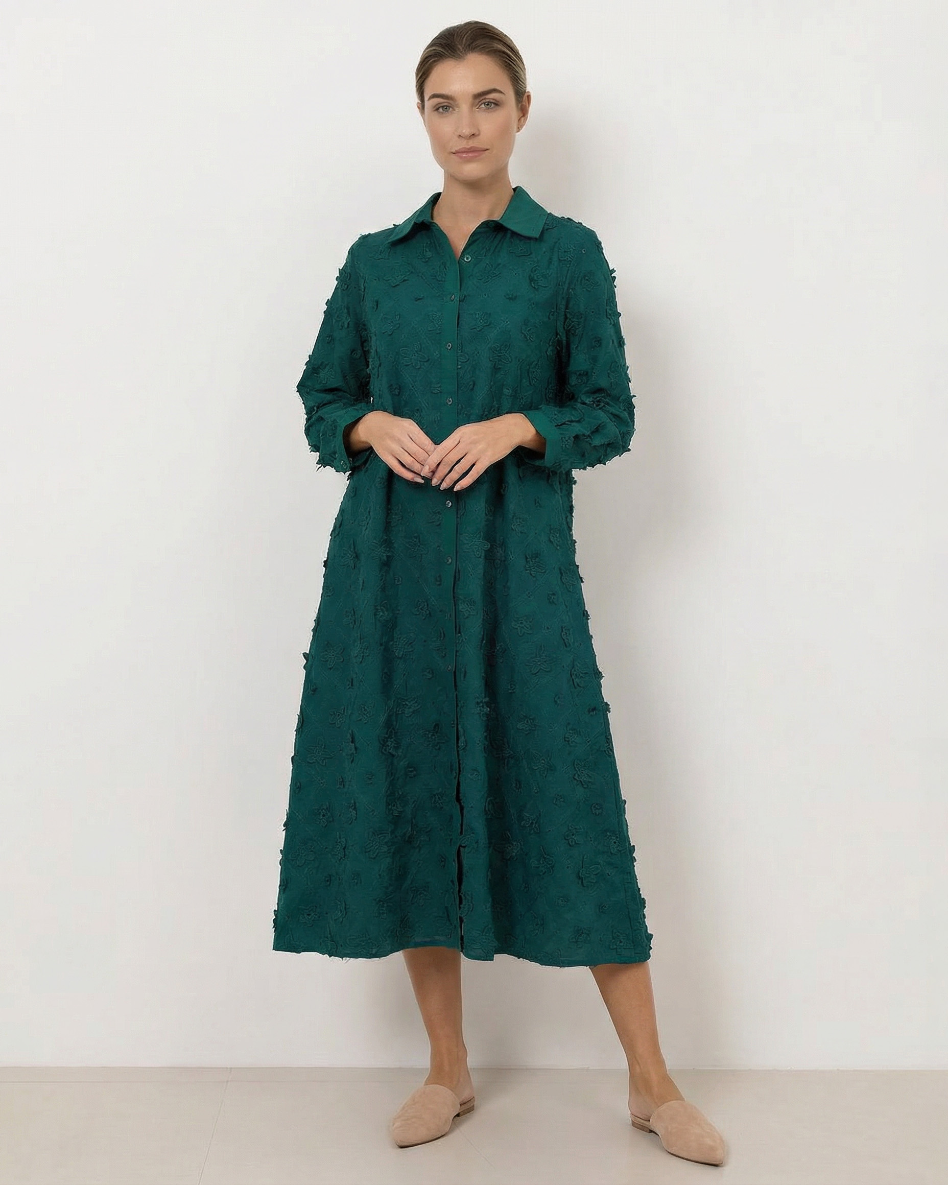 Look your best in our Embroidered Shirt Dress. This chic midi will have you turning heads wherever you go. It’s easy to wear and perfect for those dressy days out. Style it with a simple strappy heel, dainty jewellery, and a cute clutch to match!