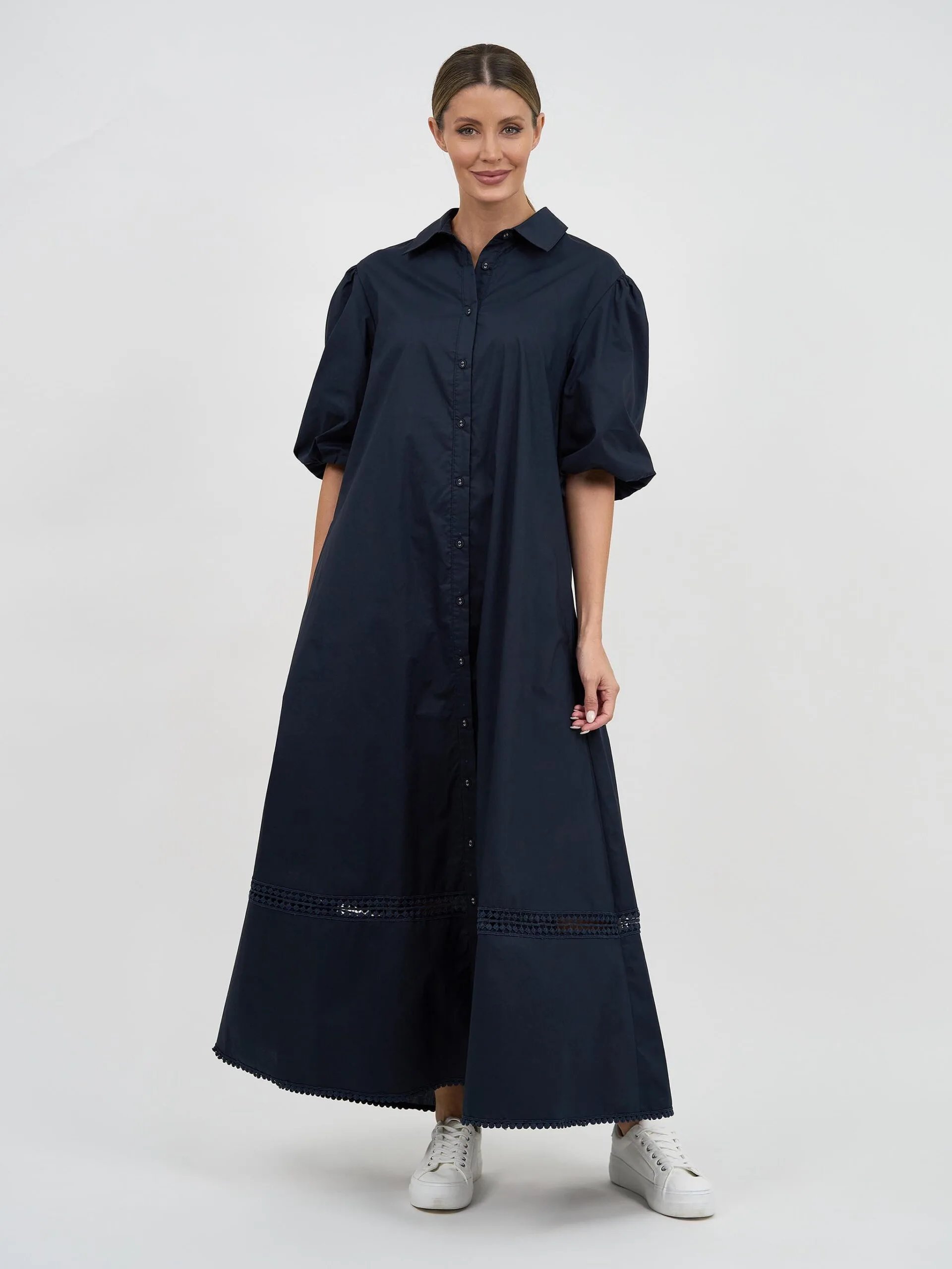 The Lattice Trim Cotton Shirt Dress is a sophisticated wardrobe essential that combines timeless design with modern detailing. Crafted from 100% cotton, this dress offers comfort, elegance, and versatility for any occasion.