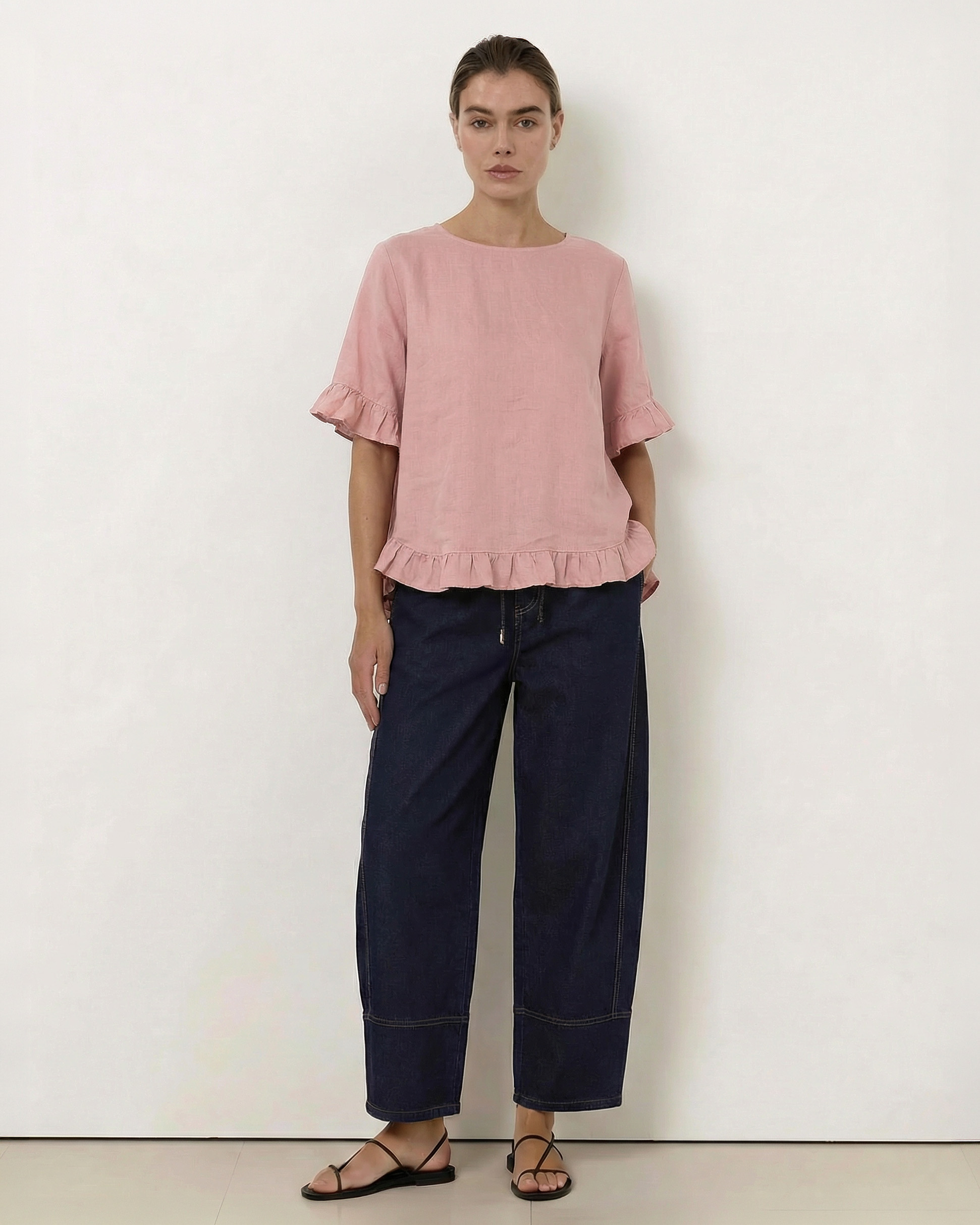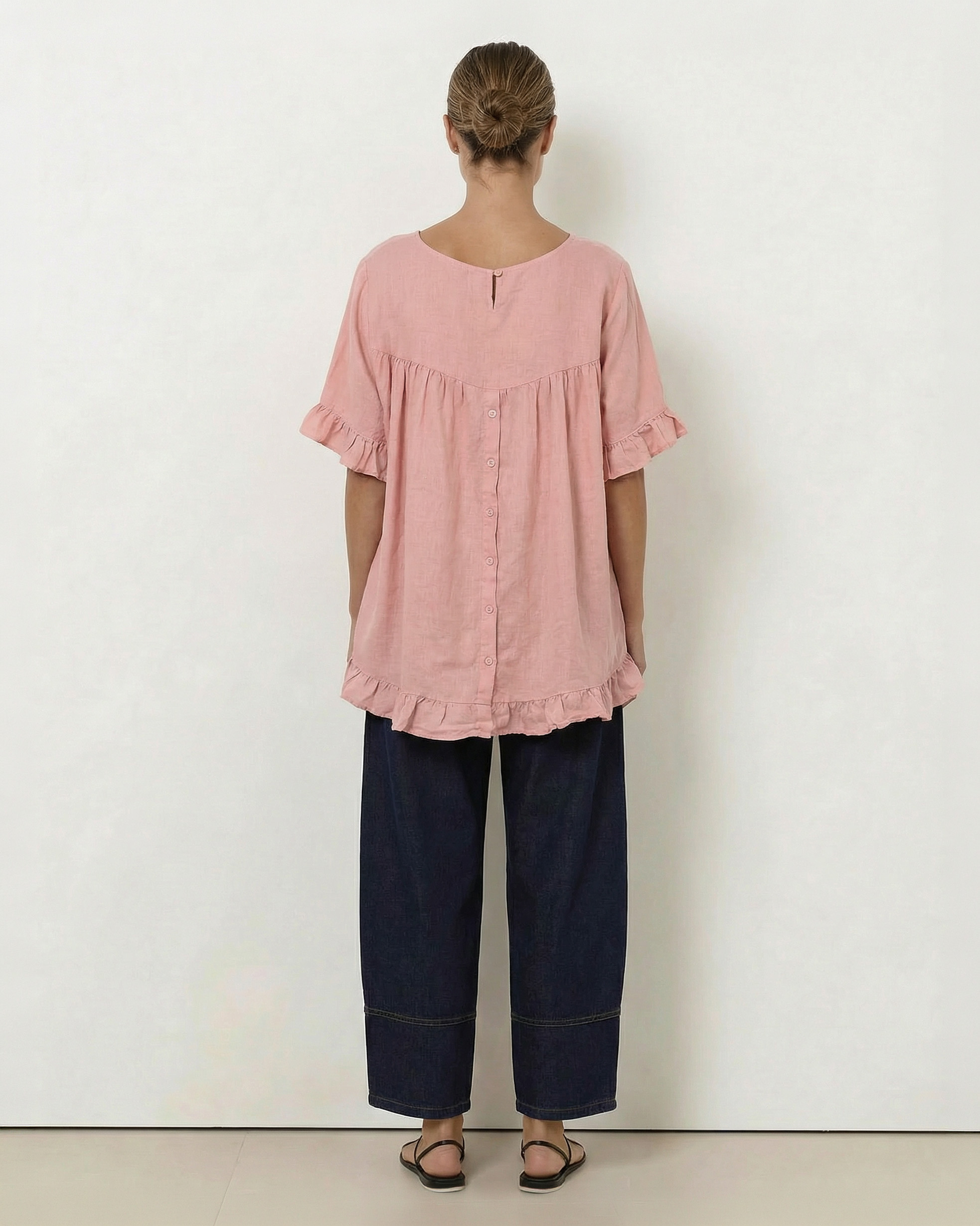 - Linen ruffle short sleeve top
