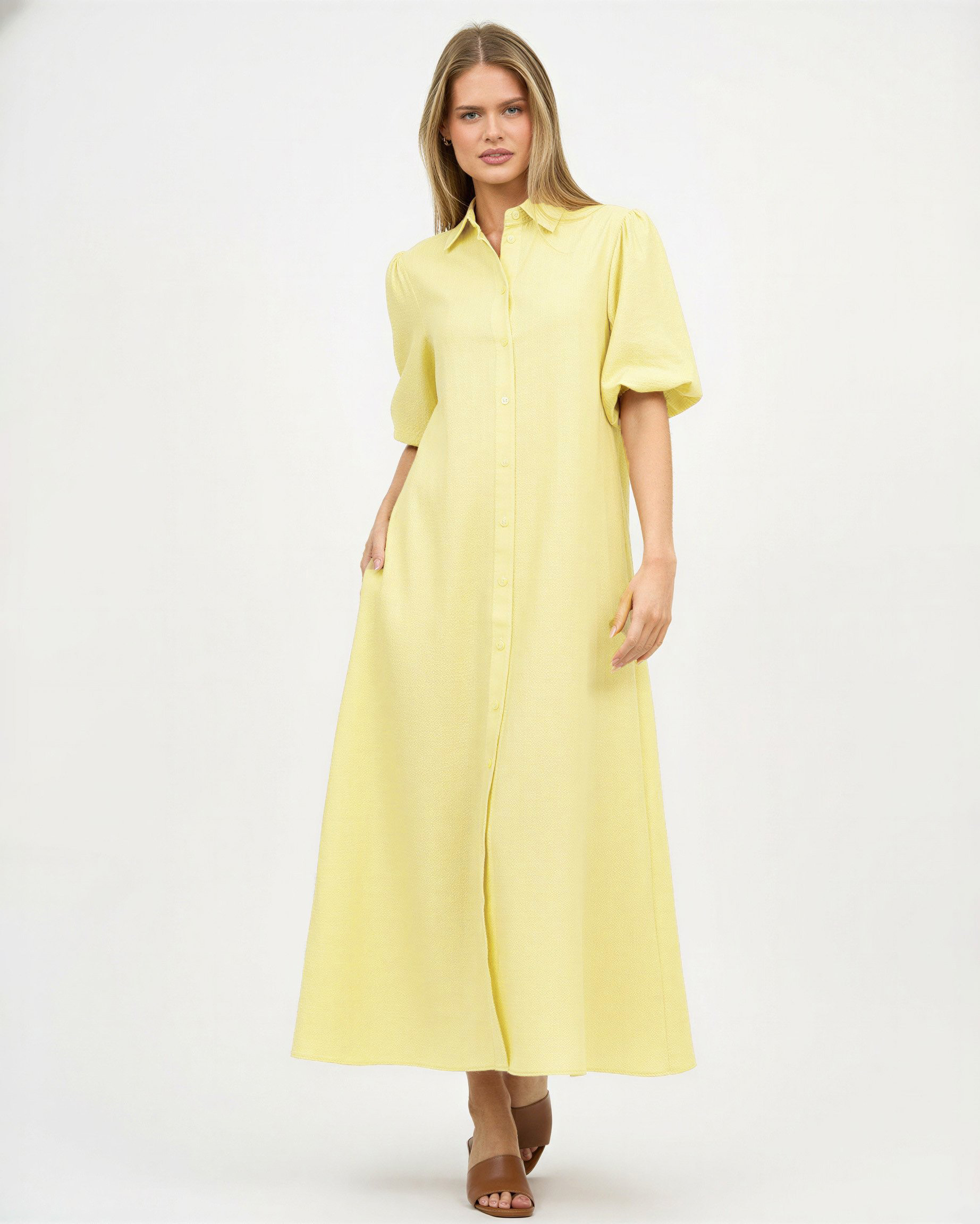 Embrace effortless sophistication with the Maxi Linen Shirt Dress. Crafted from quality linen blend , this versatile dress offers a comfortable fit and stylish details for any occasion.