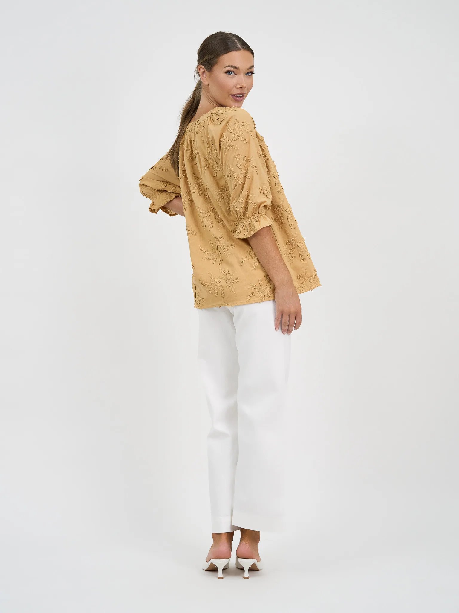 Beautiful quality top but looks more beige than in pic. I thought more gold in pic.