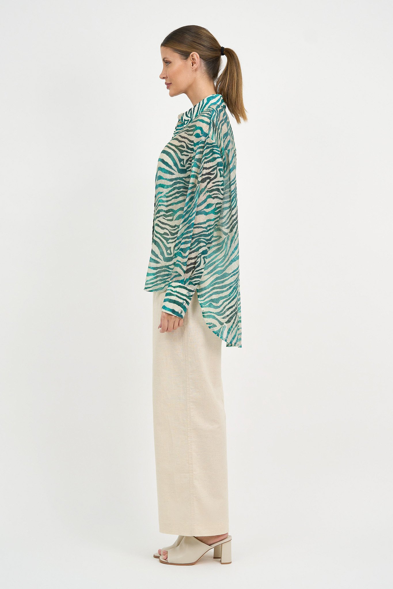 A relaxed-fitting essential, the Relaxed Long Sleeve Shirt features a collared neckline, fabric-covered buttons, and airy sheer fabric in an exclusive Liberty Rose print. Effortlessly polished with full-length sleeves and a lightweight drape, it’s perfect for layering or wearing solo.