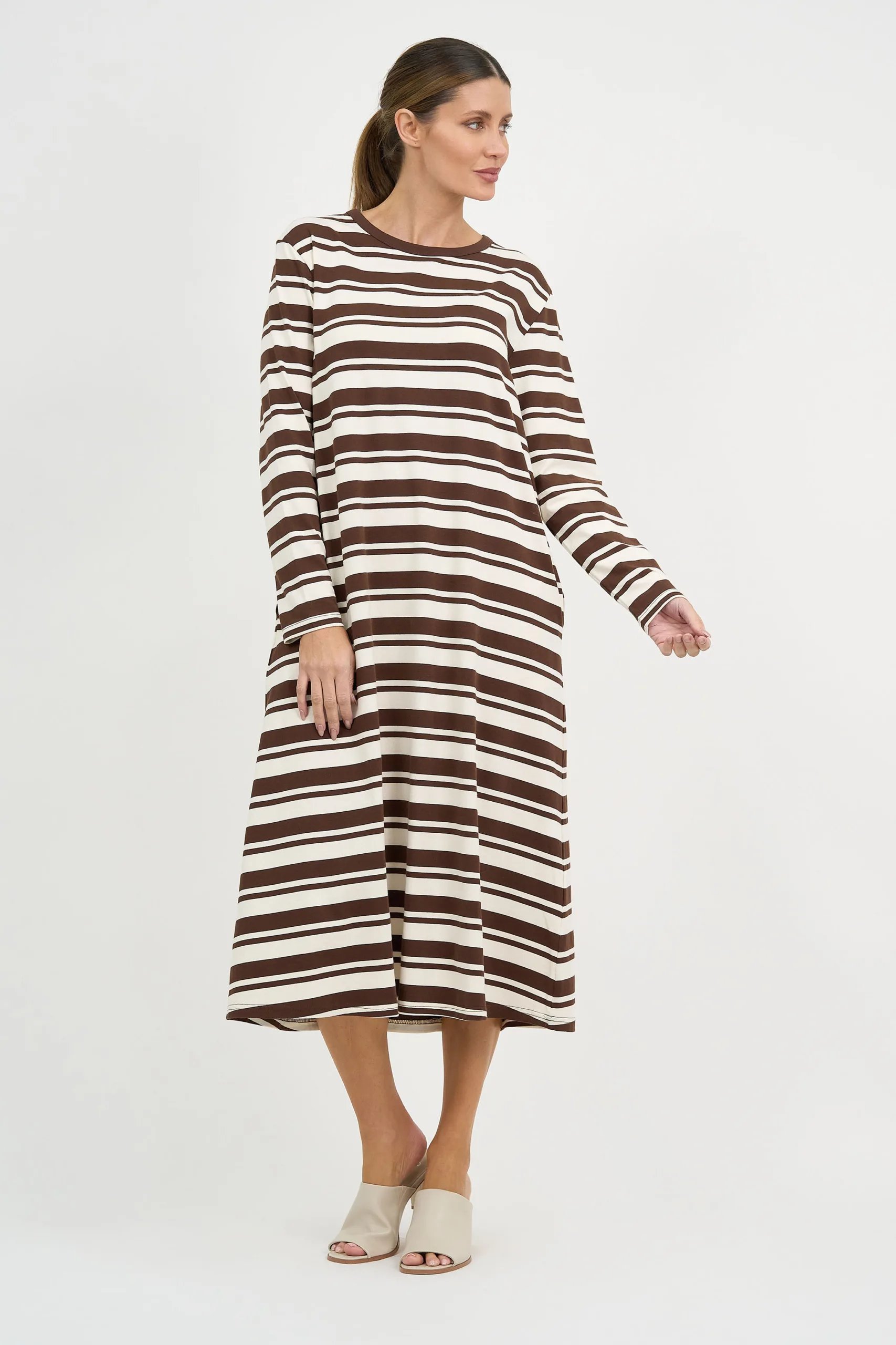 New Fit – Straight Cotton Jersey Dress offers effortless style with its relaxed straight silhouette. Designed for comfort and ease, this dress features a curved neckline, long sleeves, and practical side pockets—all crafted in soft, stretch cotton jersey.