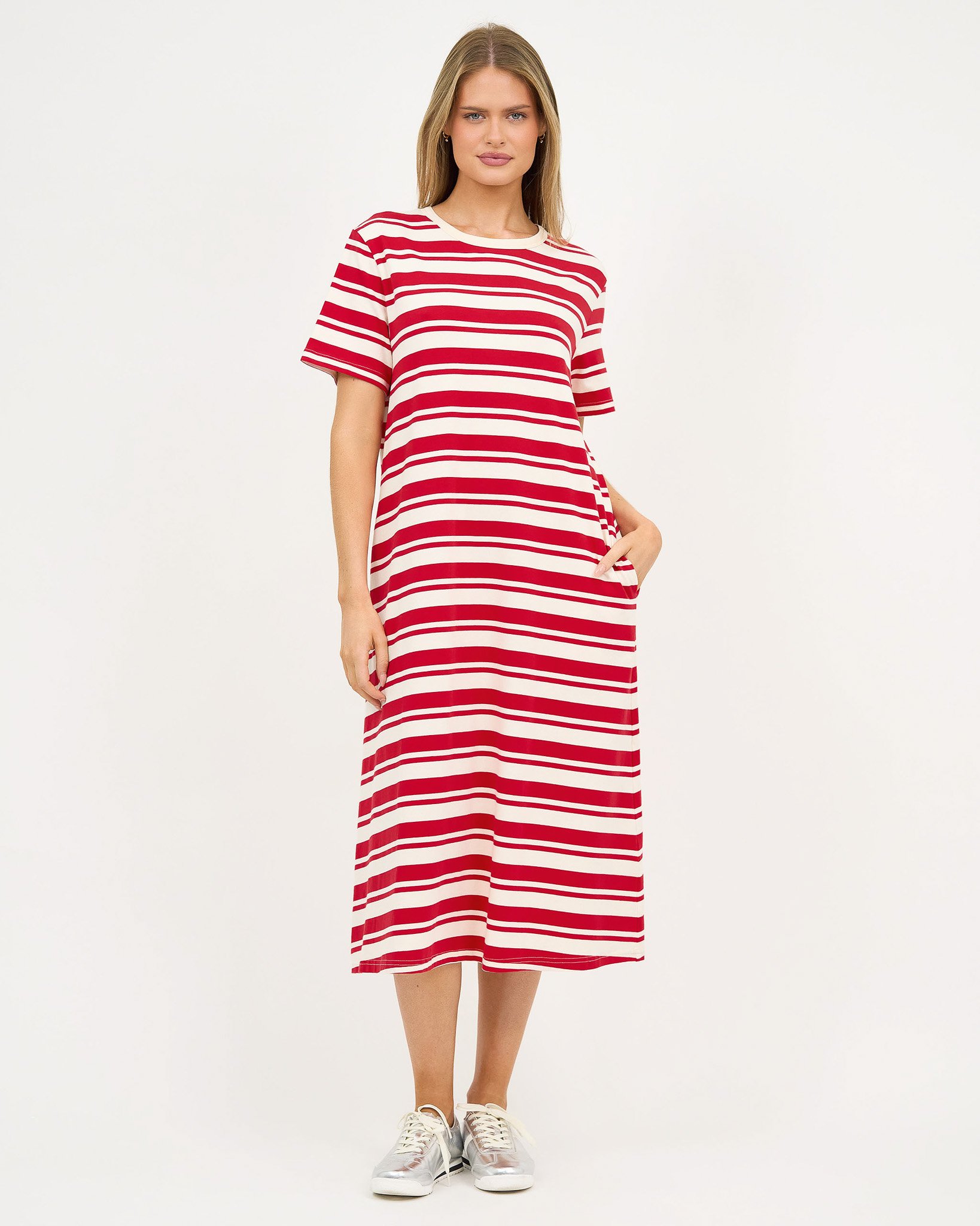 - Straight fit from hip to hemline