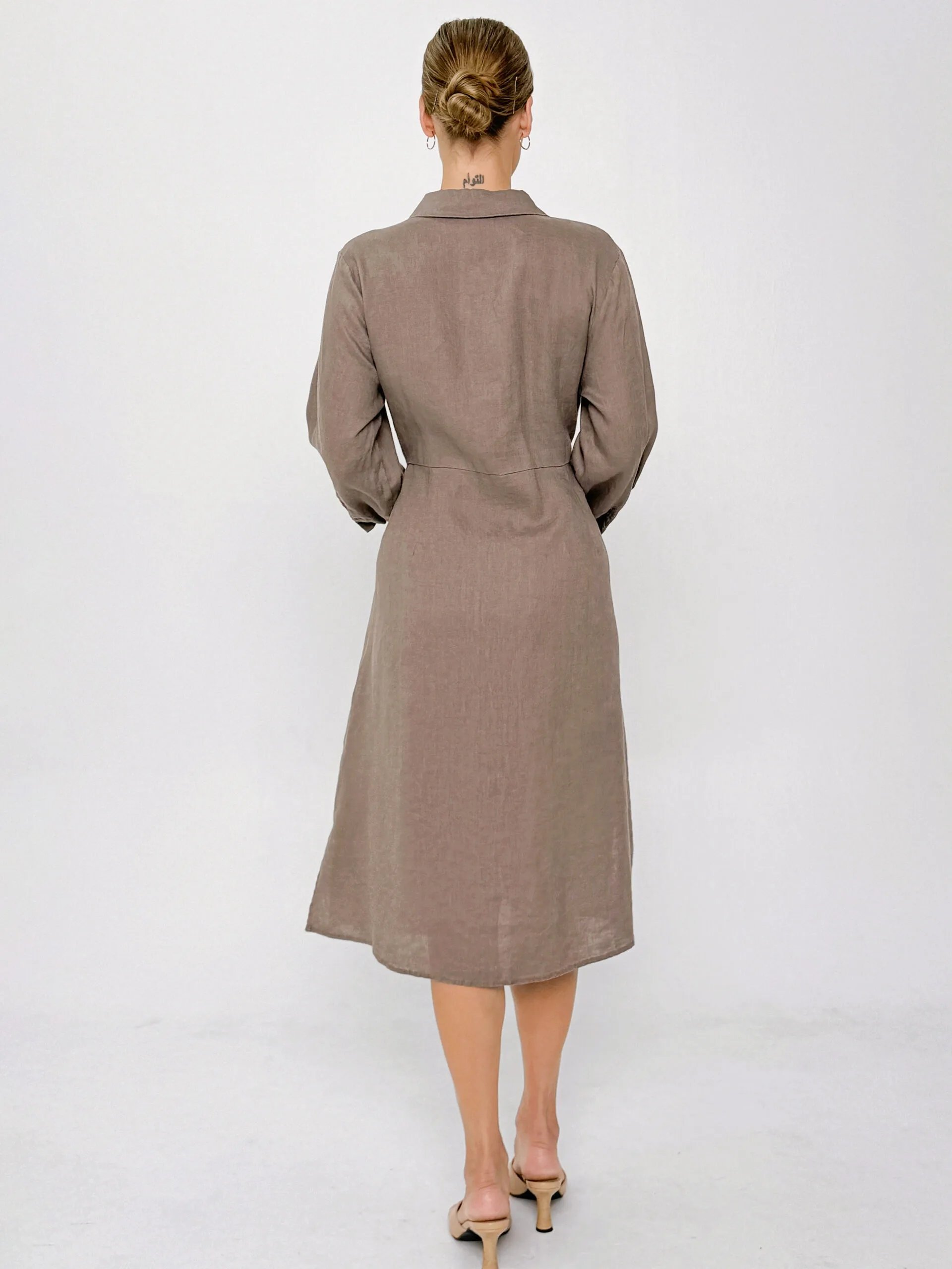 Effortlessly chic, our Tie Waist Shirt Dress features a button-down front, stand-up collar, and tie-front detail for a relaxed yet refined silhouette.